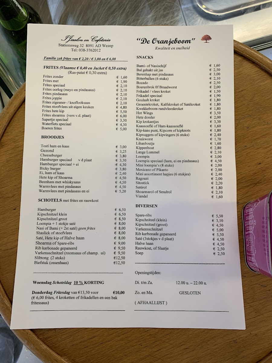 Welcome to IJssalon-Cafetaria De Oranjeboom, a charming cafeteria located in the heart of Wezep at Stationsweg 32. Whether you’re a local resident or just passing through, this delightful spot promises a satisfying experience that tantalizes your taste buds while providing a warm and welcoming atmosphere.